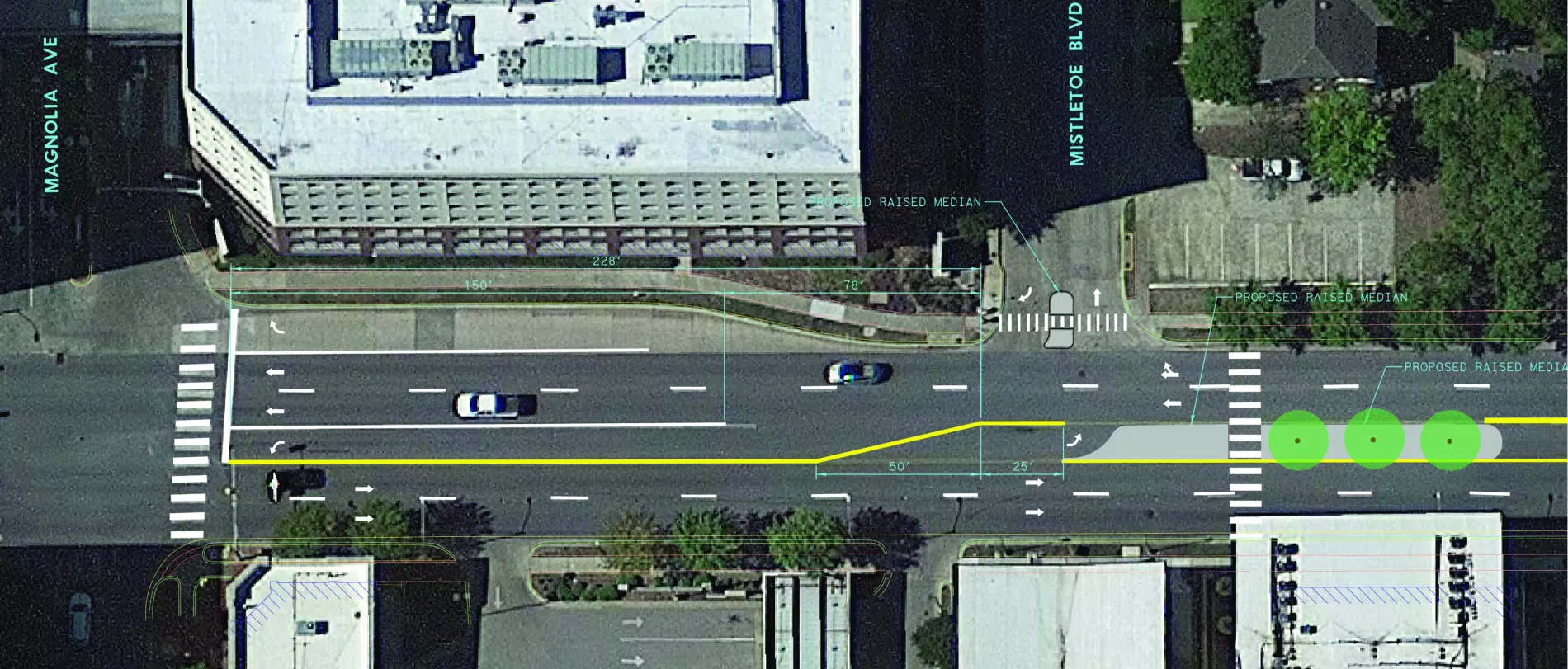 Construction has started on improvements along 8th Ave at Mistletoe Blvd, with improvements at the Cooper intersection to follow later this year. These projects are the direct result of a study completed in 2018, identifying several locations for pedestrian and vehicular circulation and safety improvements. At the intersection of Mistletoe Blvd, vehicles traveling east will be limited to a right turn only onto 8th Ave. This change relieves congestion on Mistletoe Blvd. and more importantly will prevent the types of crashes we’ve seen far too frequently. The project also includes an enhanced mid-block crosswalk across 8th Ave to protect the increasing number of pedestrians. The addition of a median in 8th Ave will provide a safe haven between the busy traffic lanes. Changes at the Cooper intersection will slightly widen the street to add a south-bound left turn lane, alleviating traffic stacking up behind cars turning into the Cook Children’s campus. Other updates include new overhead signals, enhanced crosswalks, wider sidewalks, and landscaping on the eastern side of the street. Construction has begun at Mistletoe Blvd now and should be complete this summer. Construction for the Cooper intersection will start shortly after that. That project will be split between intersection work to be completed in late 2022, and roadside and repaving work closely coordinated with Cook Children’s and completed in early 2023.